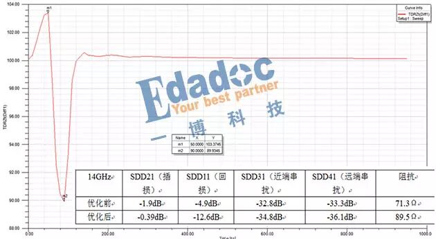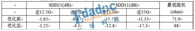 图四 光口连接器焊盘及过孔优化前后无源参数对比