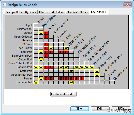 不同属性的管脚相连是不报错,报警告还是报错误的矩阵设置。
