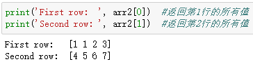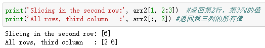 对于多维数组,我们也可以使用切片,并可把切片和单个索引值混合使用(分别用在不同维度上),仍以上面的arr2为例:
