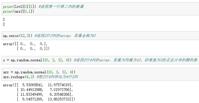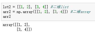 上篇提到的例子都是一维数组,其实Numpy可以创建任意维度的数组,所有之前提到的方法也可以应用在多维数组上。例如:一个列表的列表可以用来初始化一个二维数组:
