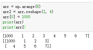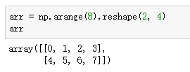 事实上,数组的形状可以随时改变,只要元素的总数不变就行。例如:我们需要一个从0递增的2x4数组,可以这样初始化: