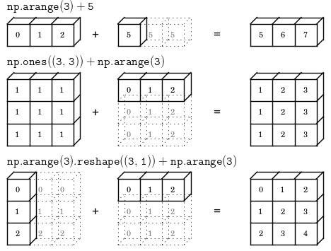 数组支持所有常规的数学运算,numpy库中包含一整套可作用于数组上的基本数学函数。需要记住的是,所有面向数组的运算都是按元素进行的(Element-wise),即对数组中的所有元素同时生效。例如:
