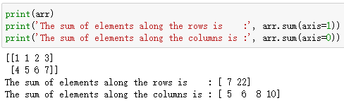 上面的方法都是针对数组所有元素来做运算的,而对于多维数组,我们也可通过传入axis参数,实现只在某一维度上进行计算: