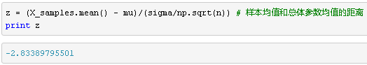 z 表示样本均值和总体均值的距离。z 越大,表示样本均值距离总体均值越大,那么就越要怀疑原假设,原假设即样本是由均值为 mu 的分布产生的。z 越小,表示距离越近,则可以同意原假设,或者说不反对原假设。