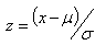 其中:x是正态分布的随机变量X的一个观测值;µ 是X的均值;σ是标准差。