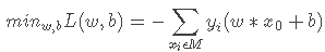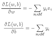 假设误分类点集合M是固定的,那么损失函数L(w,b)的梯度通过偏导计算: