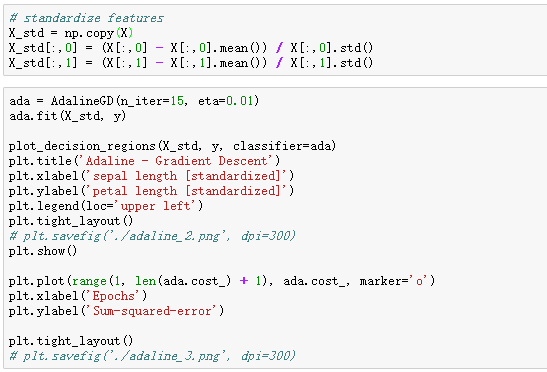 Standardizing features and re-training adaline: