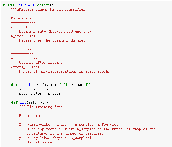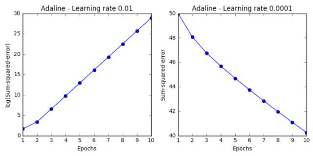 今天学习的是ADAptive LInear NEuron classifier,也是一个单层神经网络。它的重点是定义及最优化 cost function, 对于理解更高层次更难的机器学习分类模型是非常好的入门。它与 Perceptron 不同的地方在于更新 weights 时是用的 linear activation function, 而不是unit step function。Adaline 中这个 linear activation function 输出等于输入, φ(wTx)=wTx。