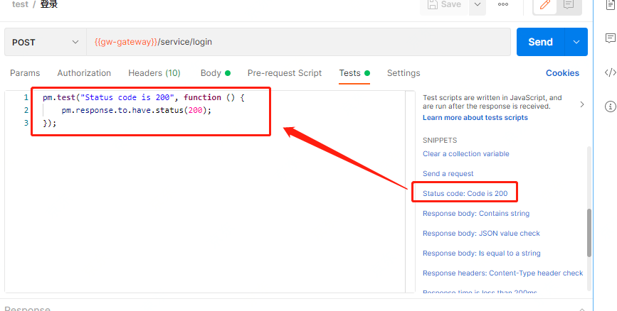 1、响应状态吗断言:验证响应结果的状态码是否为200