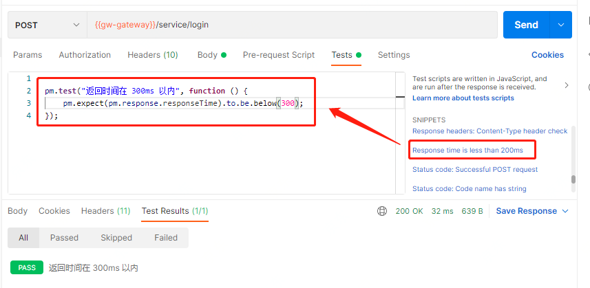 4、响应时间断言:验证响应结果返回的时间是否在指定的范围内