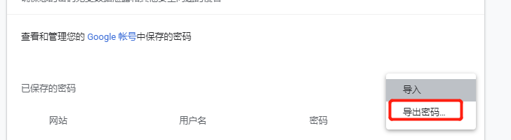 点击【已保存的密码】后的更多中的【导出密码】选项