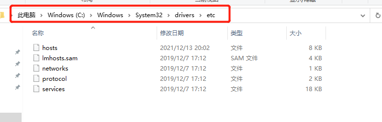 1、进入hosts文件所在路径 C:\Windows\System32\drivers\etc