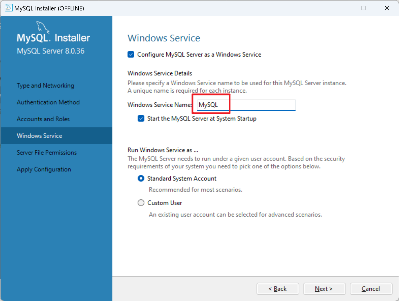 11、填写密码后点击下一步,Windows server name中修改名称为MySQL以方便使用,其他选项默认即可,然后点击【next】