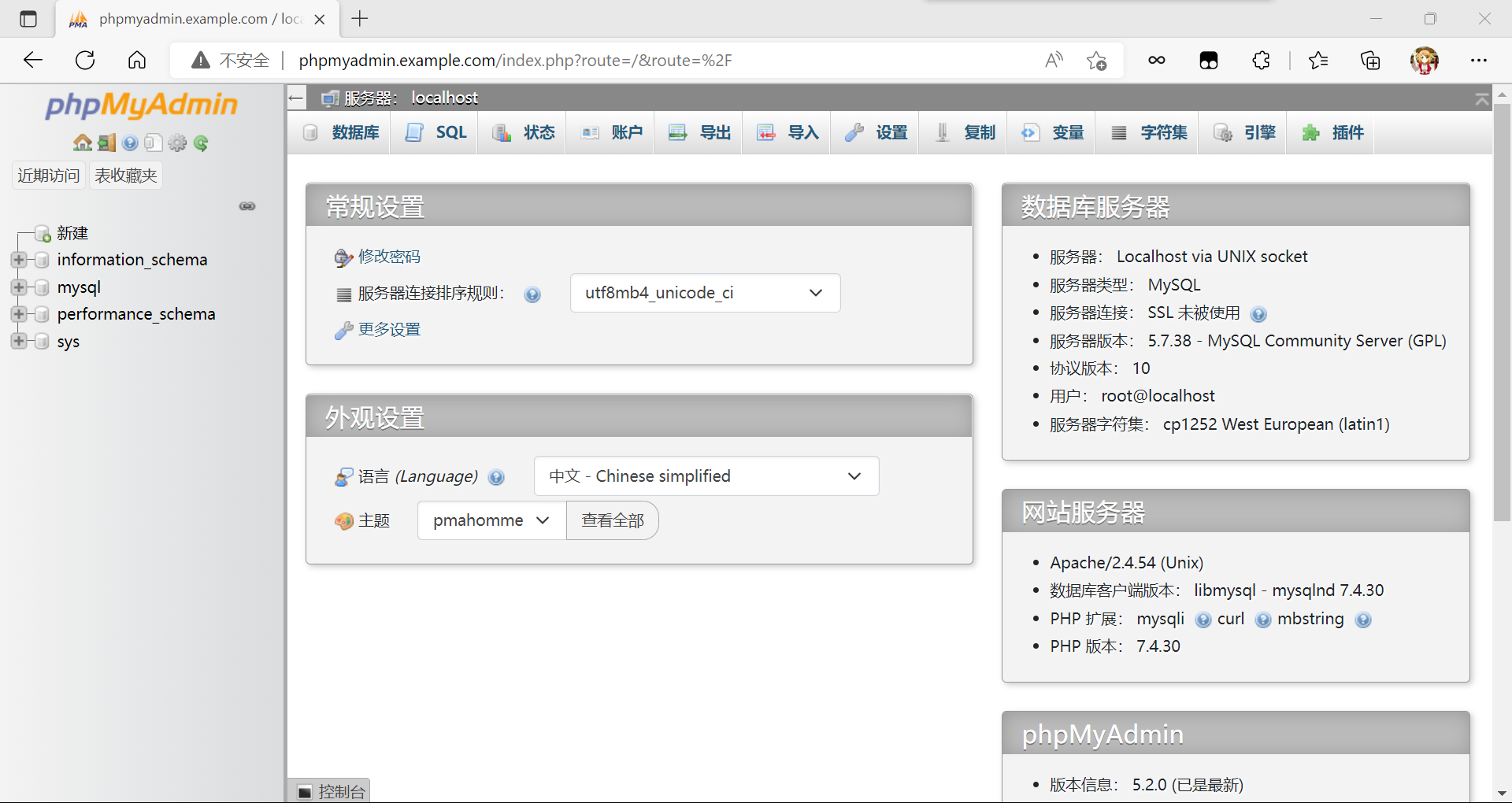 192.168.222.250 phpMyAdmin.example.com进行映射
