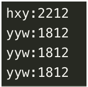 let hxy = { name: 'hxy', age: 22, say(x, y) { console.log(this.name + ':' + this.age + x + y); } } let yyw = { name: 'yyw', age: 18 } hxy.say(1, 2); // 实际上是调用的this.say() this指的是hxy hxy.say.apply(yyw, [1, 2]);// 调用apply后this改变指向,this指向yyw,相当于yyw.say() hxy.say.call(yyw, 1, 2); hxy.say.bind(yyw, 1, 2)();