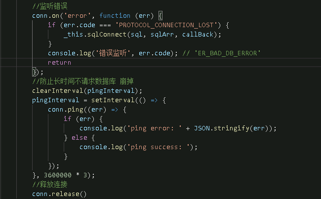 具体的报错信息为 PROTOCOL_CONNECTION_LOST,部分代码