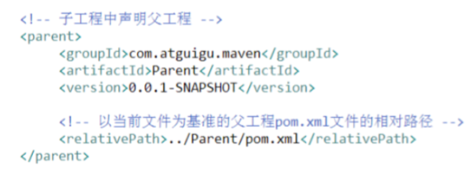 <!-- 父项目的pom.xml文件的相对路径。相对路径允许你选择一个不同的路径。默认值是../pom.xml。Maven首先在构建当前项目的地方寻找父项