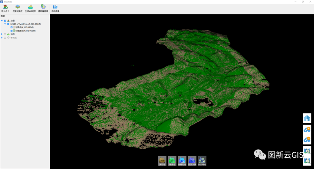 图新地球·桌面端www.tuxingis.com 点云模块暂时是该软件的实验室插件。可提供大量点云查看、分类和提取工具,包括点云三维可视化、点云赋色、自动地面点检测和分类和点大小控制;点云生成高精度地形,提取CAD格式等高线等。