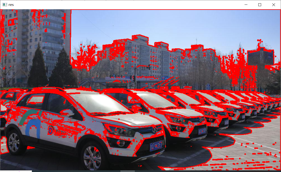 # 图像轮廓 ## 2.1 图像二值化 import cv2 #opencv的缩写为cv2 import matplotlib.pyplot as plt # matplotlib库用于绘图展示 import numpy as np # numpy数值计算工具包 def cv_show(img,name): cv2.imshow(name,img) cv2.waitKey() cv2.destroyAllWindows() img = cv2.imread('D:/pycharm/pycharm-cope/opencv/resource/photo/08_Car.png') cv_show(img,'img') gray = cv2.cvtColor(img,cv2.COLOR_BGR2GRAY) ret, thresh = cv2.threshold(gray, 127, 255, cv2.THRESH_BINARY) # 大于 17 的取 255,小于 127 的取 0 cv_show(thresh,'thresh') ## 2.2 轮廓检测 contours, hierarchy = cv2.findContours(thresh, cv2.RETR_TREE, cv2.CHAIN_APPROX_NONE) # 做完二值后,再用图像轮廓检测函数再去做 contours, hierarchy = cv2.findContours(thresh, cv2.RETR_TREE, cv2.CHAIN_APPROX_NONE) # cv_show(contours,'binary') # 返回的二值化后的图像 print(np.array(contours).shape) # 轮廓点的信息 print(hierarchy) # hierarchy 是把轮廓结果保存在层级结构当中,暂时用不上 ## 2.3 绘制所有轮廓 # 传入参数:图像、轮廓、轮廓索引(自适应,画所有轮廓),颜色模式,线条厚度 # 注意需要copy,要不原图会变。。。 cv_show(img,'img') draw_img = img.copy() # 若不用拷贝后的,而是用原图画轮廓,则画轮廓图绘把原始的输入图像重写,覆盖掉 res = cv2.drawContours(draw_img,contours,-1,(0,0,255),2) cv_show(res,'res') # 2.4 绘制某个轮廓 draw_img = img.copy() res = cv2.drawContours(draw_img,contours,7,(0,0,255),2) # 画 7 号轮廓 cv_show(res,'res') # 2.5 综合展示 img = cv2.imread('D:/pycharm/pycharm-cope/opencv/resource/photo/10_contours.png') gray = cv2.cvtColor(img,cv2.COLOR_BGR2GRAY) ret, thresh = cv2.threshold(gray, 127, 255, cv2.THRESH_BINARY) # 大于17的取255,小于127的取0 contours, hierarchy = cv2.findContours(thresh, cv2.RETR_TREE, cv2.CHAIN_APPROX_NONE) draw_img = img.copy() # 若不用拷贝后的,而是用原图画轮廓,则画轮廓图绘把原始的输入图像重写,覆盖掉 res = cv2.drawContours(draw_img,contours,-1,(0,0,255),2) #-1表示画出所有图形的里面轮廓,可以换不同的数字进行测试 cv_show(res,'res') # 3. 轮廓特征提取 img = cv2.imread('D:/pycharm/pycharm-cope/opencv/resource/photo/10_contours.png') gray = cv2.cvtColor(img,cv2.COLOR_BGR2GRAY) ret, thresh = cv2.threshold(gray, 127, 255, cv2.THRESH_BINARY) # 大于17的取255,小于127的取0 contours, hierarchy = cv2.findContours(thresh, cv2.RETR_TREE, cv2.CHAIN_APPROX_NONE) cnt = contours[0] # 通过轮廓索引,拿到该索引对应的轮廓特征 print(cv2.contourArea(cnt)) # 该轮廓的面积 print(cv2.arcLength(cnt,True)) # 该轮廓的周长,True表示闭合的 # 4. 轮廓近似 # 4.2 正常轮廓展示 img = cv2.imread('D:/pycharm/pycharm-cope/opencv/resource/photo/11_contours2.png') gray = cv2.cvtColor(img,cv2.COLOR_BGR2GRAY) ret, thresh = cv2.threshold(gray, 127, 255, cv2.THRESH_BINARY) # 大于17的取255,小于127的取0 contours, hierarchy = cv2.findContours(thresh, cv2.RETR_TREE, cv2.CHAIN_APPROX_NONE) draw_img = img.copy() # 若不用拷贝后的,而是用原图画轮廓,则画轮廓图绘把原始的输入图像重写,覆盖掉 res = cv2.drawContours(draw_img,contours,-1,(0,0,255),2) # -1表示里外轮廓都显示 cv_show(res,'res') # 4.3 轮廓近似展示 img = cv2.imread('D:/pycharm/pycharm-cope/opencv/resource/photo/11_contours2.png') gray = cv2.cvtColor(img,cv2.COLOR_BGR2GRAY) ret, thresh = cv2.threshold(gray, 127, 255, cv2.THRESH_BINARY) # 大于17的取255,小于127的取0 contours, hierarchy = cv2.findContours(thresh, cv2.RETR_TREE, cv2.CHAIN_APPROX_NONE) cnt = contours[0] draw_img = img.copy() res = cv2.drawContours(draw_img,[cnt],-1,(0,0,255),2) cv_show(res,'res') epsilon = 0.1 * cv2.arcLength(cnt,True) # 周长的百分比,这里用 0.1 的周长作阈值 approx = cv2.approxPolyDP(cnt,epsilon,True) # 第二个参数为阈值 draw_img = img.copy() res = cv2.drawContours(draw_img,[approx],-1,(0,0,255),2) cv_show(res,'res') # 5. 外接矩形 img = cv2.imread('D:/pycharm/pycharm-cope/opencv/resource/photo/10_contours.png') gray = cv2.cvtColor(img,cv2.COLOR_BGR2GRAY) ret, thresh = cv2.threshold(gray, 127, 255, cv2.THRESH_BINARY) # 大于17的取255,小于127的取0 contours, hierarchy = cv2.findContours(thresh, cv2.RETR_TREE, cv2.CHAIN_APPROX_NONE) cnt = contours[6]#里面的数字不同得到不同的信息,画出不一样的轮廓 x,y,w,h = cv2.boundingRect(cnt) # 可以得到矩形四个坐标点的相关信息 img = cv2.rectangle(img,(x,y),(x+w,y+h),(0,255),2) cv_show(img,'img') area = cv2.contourArea(cnt) rect_area = w * h extent = float(area) / rect_area print('轮廓面具与边界矩形比:',extent) # 6. 外接圆 img = cv2.imread('D:/pycharm/pycharm-cope/opencv/resource/photo/10_contours.png') gray = cv2.cvtColor(img,cv2.COLOR_BGR2GRAY) ret, thresh = cv2.threshold(gray, 127, 255, cv2.THRESH_BINARY) # 大于17的取255,小于127的取0 contours, hierarchy = cv2.findContours(thresh, cv2.RETR_TREE, cv2.CHAIN_APPROX_NONE) cnt = contours[0] draw_img = img.copy() (x,y),redius = cv2.minEnclosingCircle(cnt) center = (int(x),int(y)) redius = int(redius) img = cv2.circle(draw_img,center,redius,(0,255,0),2) cv_show(img,'img')