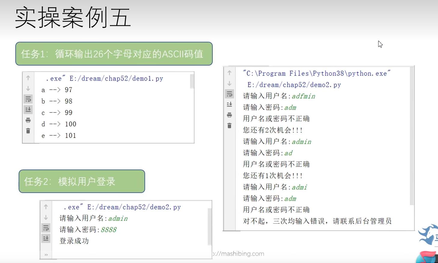 for i in range(1, 4): user = 'admin' pwd = '123' answer_user = input('请输入用户名:') answer_pwd = input('请输入密码:') if answer_user==user and answer_pwd==pwd: print('登录成功') break else: print('用户名或者密码不正确!') if i<3: print(f'您还有{3-i}次机会!!!') else: print('对不起,您的三次全部输入错误,请联系后台管理人员')