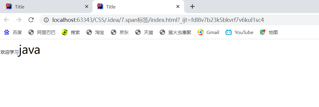 <!DOCTYPE html> <html lang="en"> <head> <meta charset="UTF-8"> <title>Title</title> <style> #title{ font-size: 40px; } </style> </head> <body> 欢迎学习<span id="title" >java</span> </body> </html>