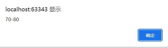 <!DOCTYPE html> <html lang="en"> <head> <meta charset="UTF-8"> <title>Title</title> <!--javascript严格区分大小写!!--> <script> // 1.定义变量 变量类型 变量名 = 变量值; var score = 70; //alert(num); // 2.条件控制 if (score>60 && score<70){ alert("60-70") } else if (score>=70 && score<80){ alert("70-80") } else { alert("other") } console.log(score) //console.log(score)在浏览器的控制台打印变量!system.out.println(); </script> </head> <body> </body> </html>