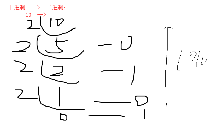 -----十进制 ---》 二进制 :