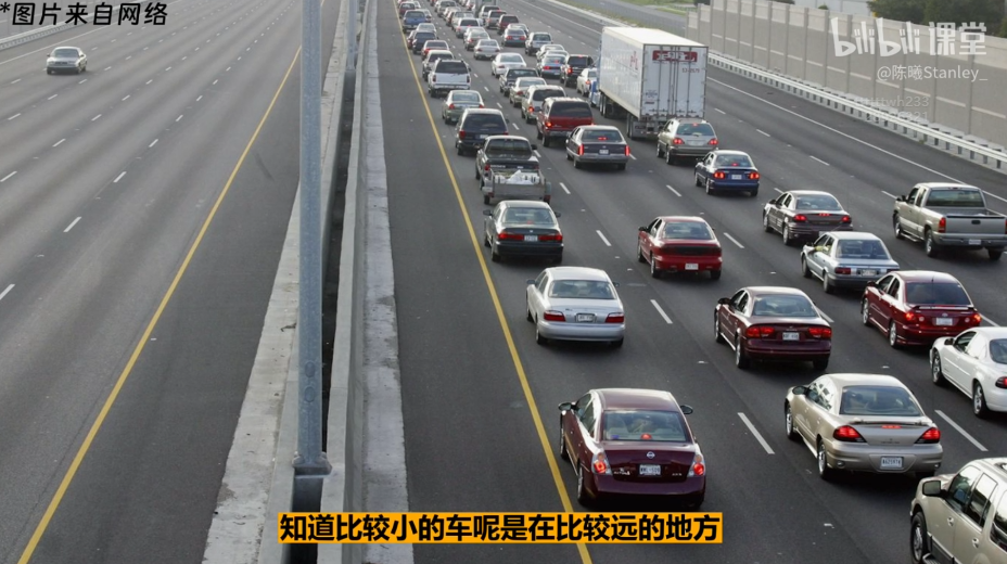 比较小的物体在远处,比较大的物体在近处