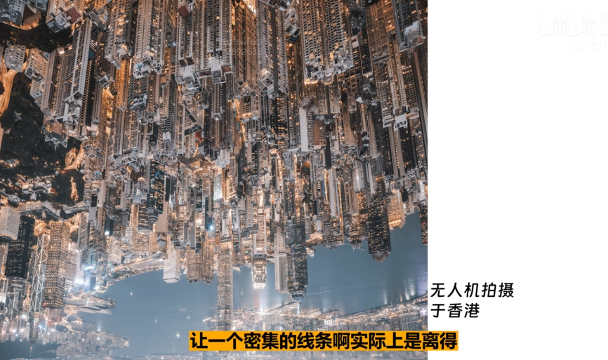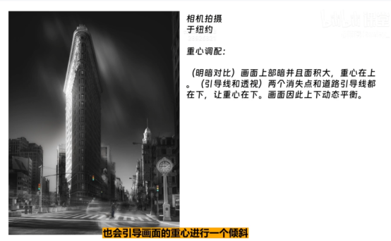 左边阴影面小,右边光源足且有尽头的消失点,俯拍的视角构成三点构图,形成平衡