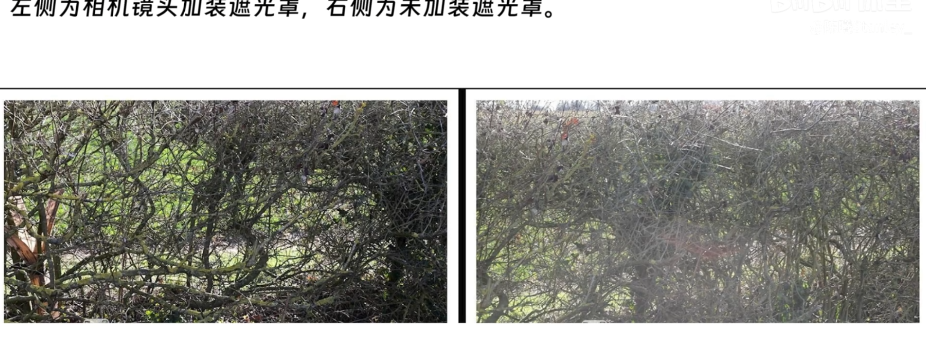面对强光源时,可能会让镜头产生雾化。用遮光罩或者手去阻挡一部分光源。