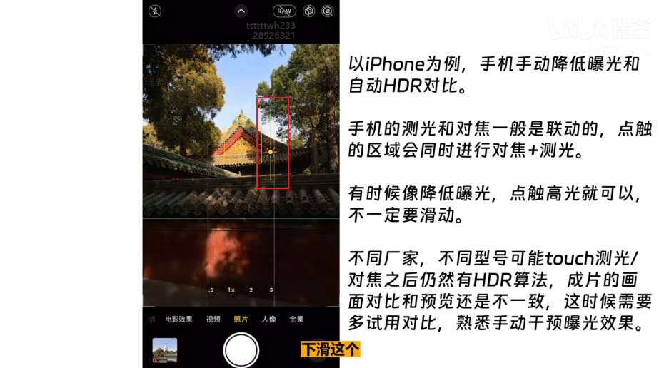 太阳光过曝的时候,touch光源对焦,再晃动两下,不会再尝试去寻找新的曝光点了