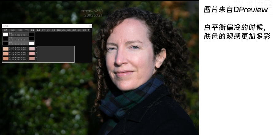 以肤色为准,导致白平衡偏暖