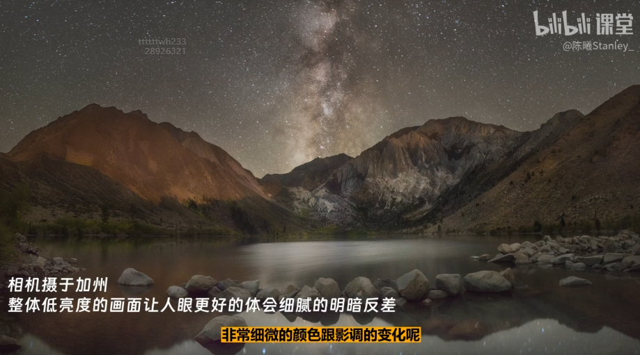 白天正午太阳光强的环境下,对比度高;夜晚一片漆黑的情况下,对比度降低;整体降低亮度会让人眼体会细腻的明暗反差