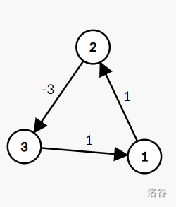 但是如果不存在最短路呢?不存在最短路,也就是建出的图中存在负环。举个例子: