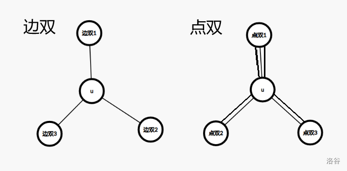 边双缩成一棵树,点双缩成圆方树,强连通分量缩成一个DAG。