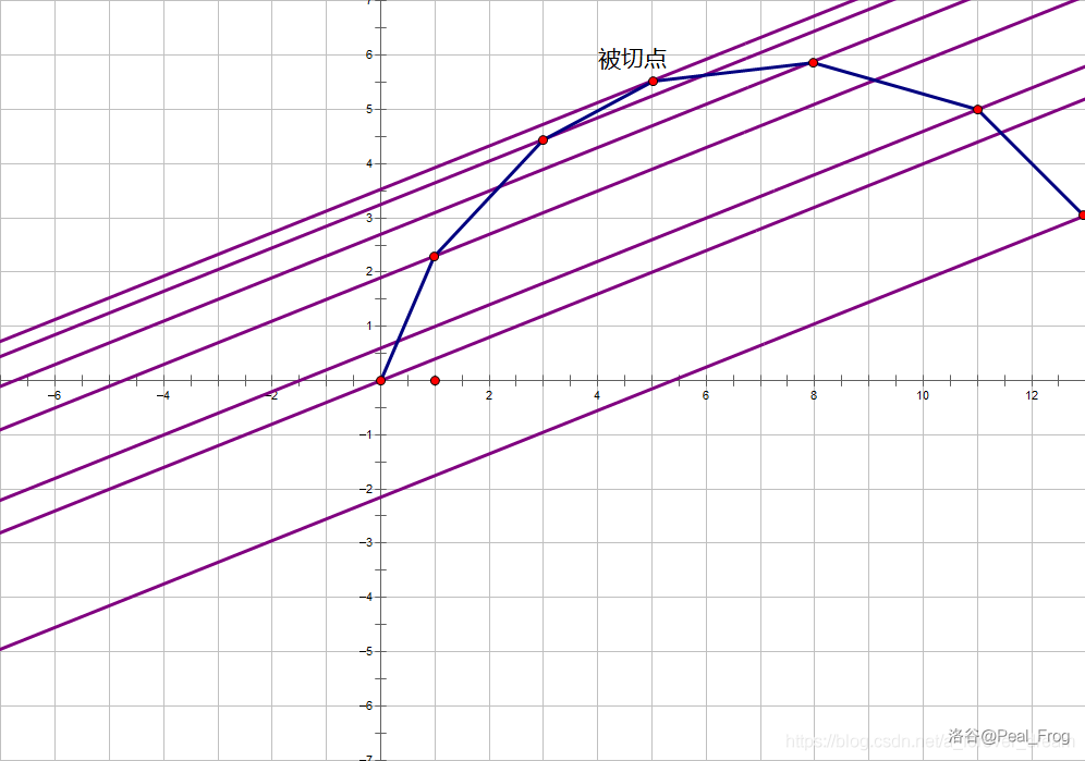 还要注意,有可能出现一条直线与凸壳相切在多个点上,这个时候可以手动去规定是取最左点还是最右点。