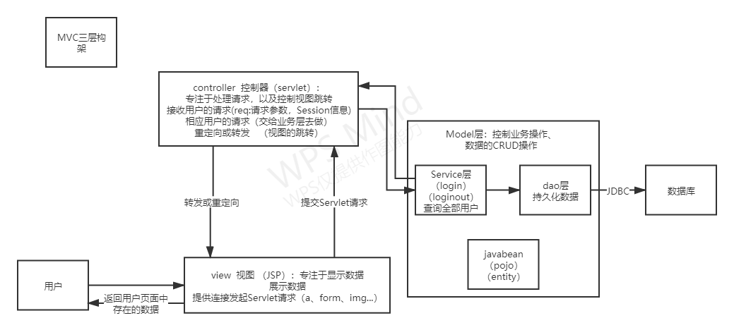 - 相应用户的请求(交给业务层去做)