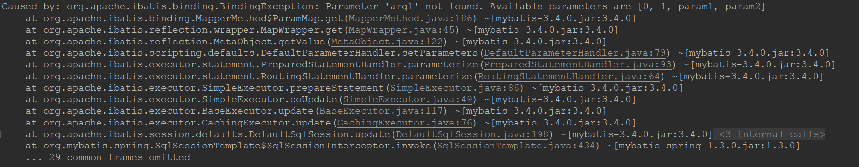mybatis - Parameter 'arg1' not found. Available parameters are [0, 1, param1, param2]