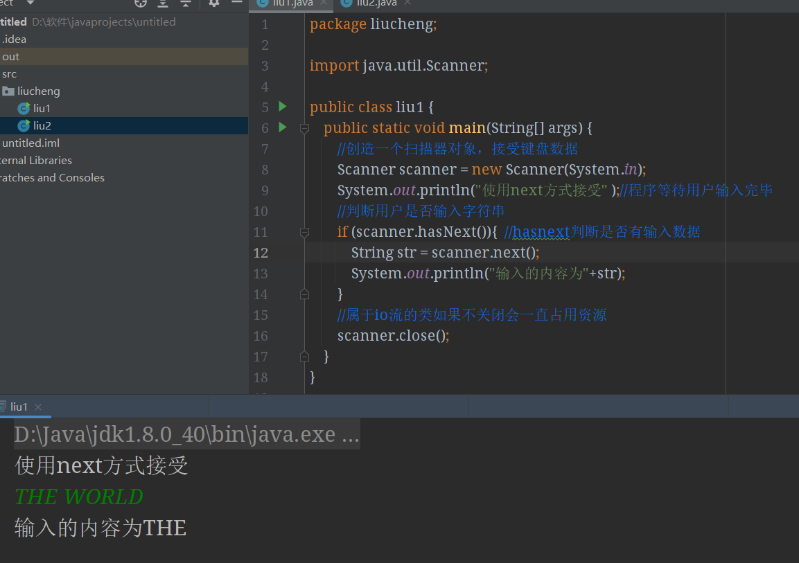 1.以enter为结束符,nextline方法返回的是输入回车前的所有字符