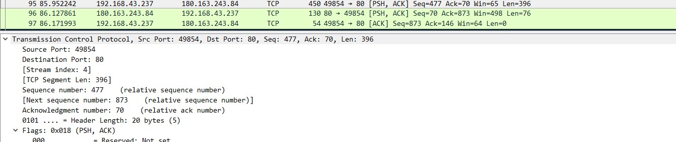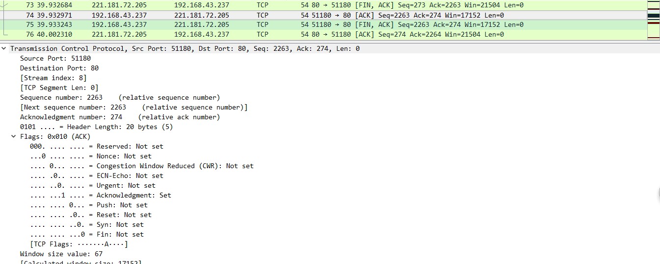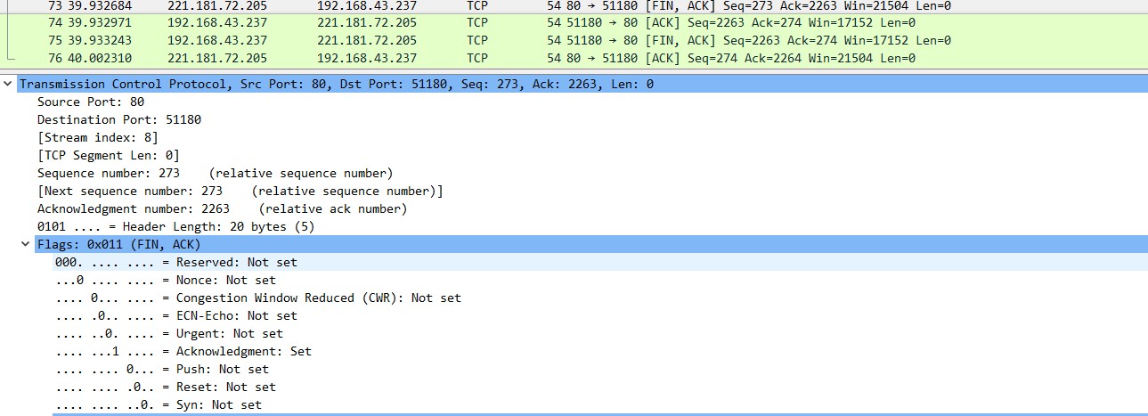选择一个TCP协议报文,查看IP报文相应信息