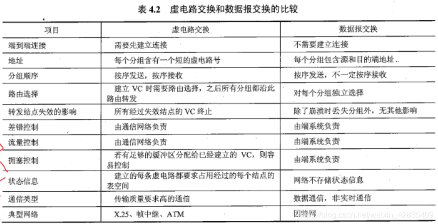 3.对比虚电路网络和数据报网络的优缺点。 P134