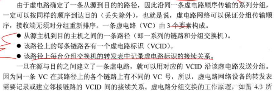 每条虚电路都有虚电路号,称为虚电路标识(VCID),沿某条虚电路传输的分组中包含所属虚电路的VCID。虚电路网络设备根据分组所携带的VCID判断其所属的虚电路,从而决策如何转发分组,并确保分组沿对应虚电路送达目的。