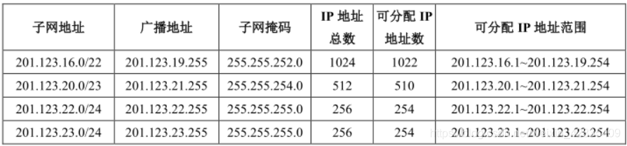 9.某ISP拥有一个网络地址块201.123.16.0/21,现在该ISP要为4个组织分配IP地址,其需要的地址数量分别为985、486、246以及211,请给出一个合理的分配方案,并说明各组织所分配子网的子网地址、广播地址、子网掩码、IP地址总数、可分配IP地址数和可分配IP地址范围。 P152-153