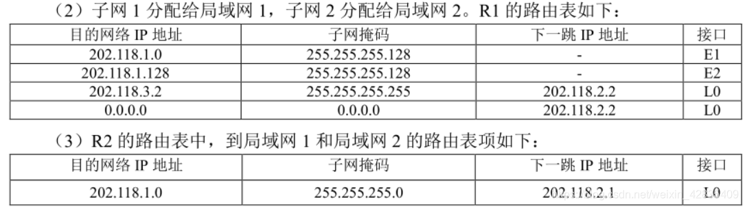 (1)将IP地址空间202.118.1.0/24分配给局域网1、局域网2,每个局域网需分配的IP地址不少于120个。请给出分配结果,并分别写出局域网1、局域网2的子网地址、广播地址、子网掩码、IP地址总数、可分配IP地址数和可分配IP地址范围。