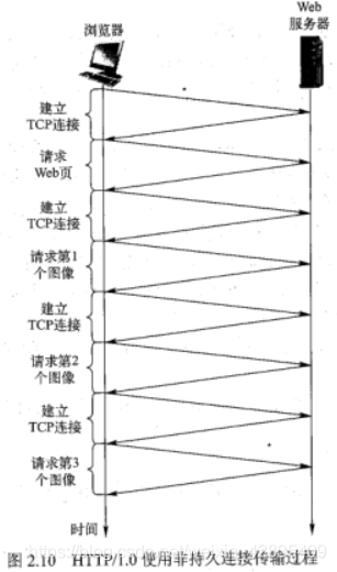 7.简述HTTP1.0获取一引用10个小JPEG图片网页的通信过程。 P59