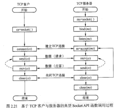 14.简述TCP客户程序与TCP服务器程序的SockertAPI基本函数调用过程。P81