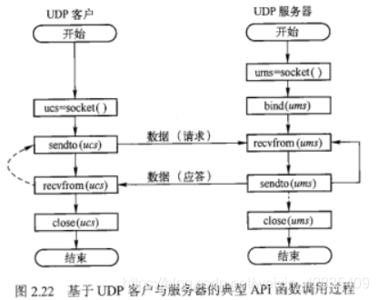15.简述UDP客户程序与UDP服务器程序的SockertAPI基本函数调用过程。P81