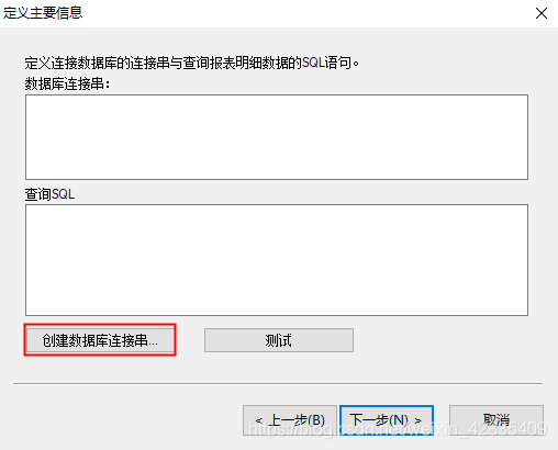 8.在查询SQL里写入要与数据库连接的语句,点击测试
