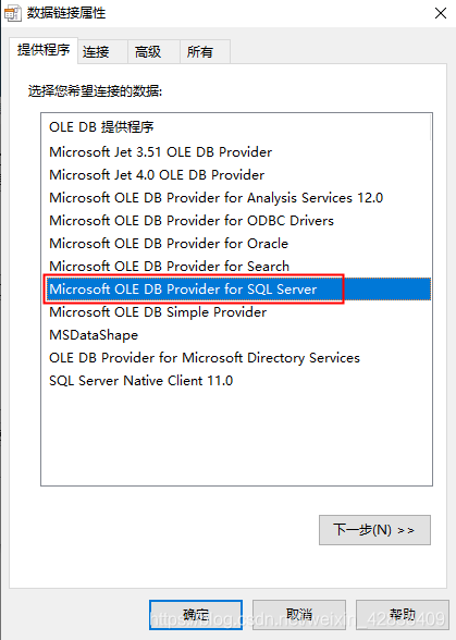 4.选择所要连接的数据库,点击下一步