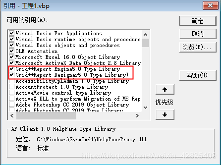 值得一提的是,我当时虽然添加了引用和部件但还是找不到GRDispalyViewer控件,而且 grdes50.dll 和 gregn50.dll 和 MSCOMCTL.OCX 这三个控件也加载了,还是不行,后来请教小伙伴,他重新加载了一下这三个控件就好了。原来这三个必须用 regsvr32 来加载,不能用 sysWoW64 加载(即使我还是用的管理员权限加载的,他是直接在运行窗口加载的)真是太神奇了。